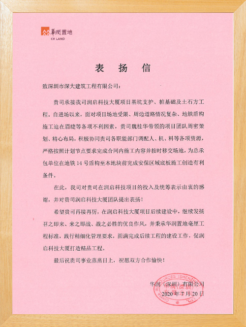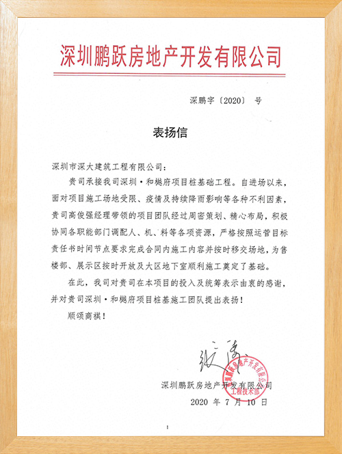 • 越秀·和樾府榮獲深圳鵬躍房地產(chǎn)開發(fā)有限公司表揚認可
